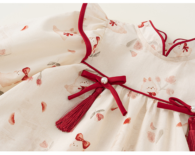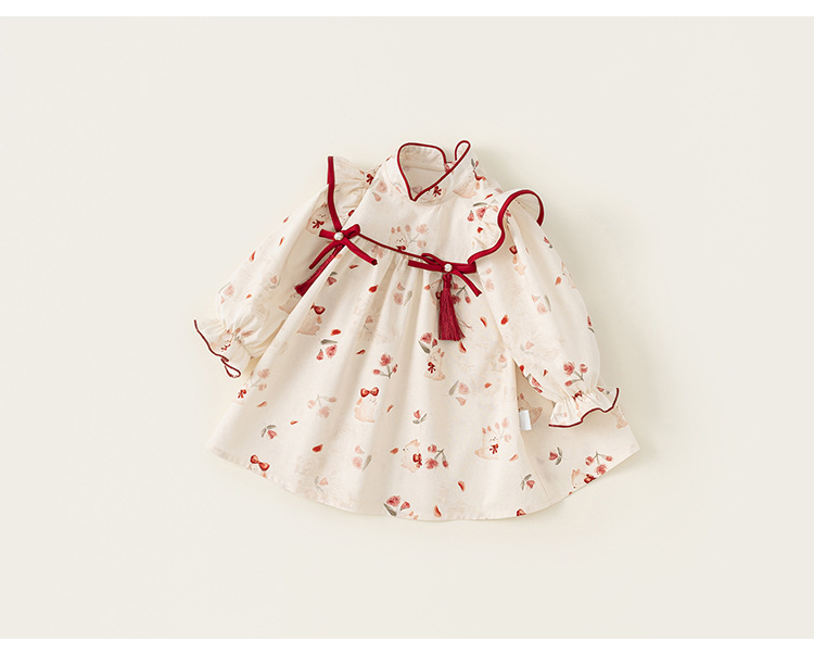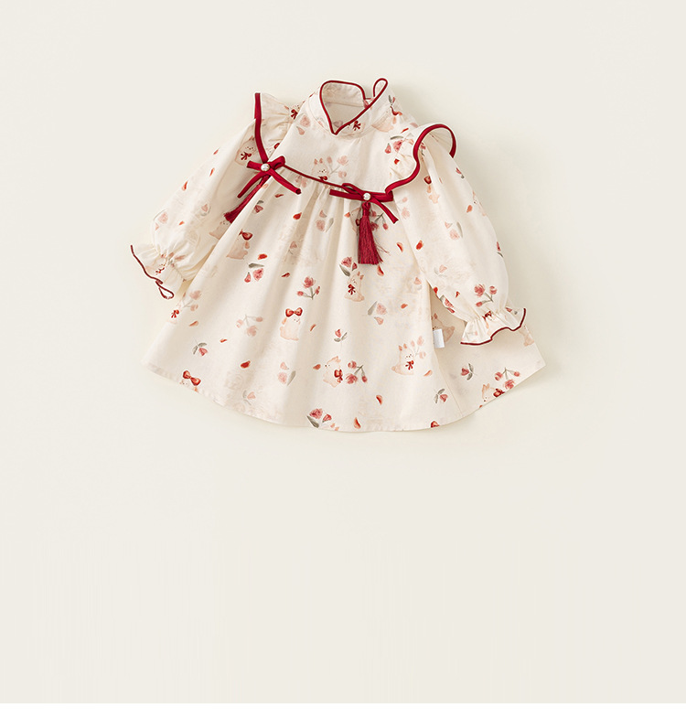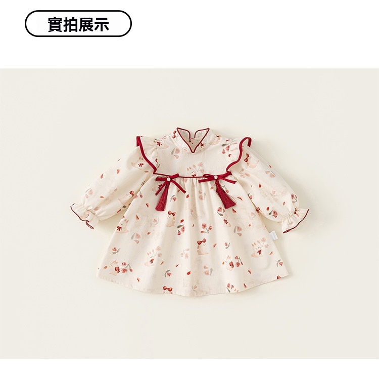 童裝2025年秋季新款女童碎花連衣裙兒童蝴蝶結長袖公主裙