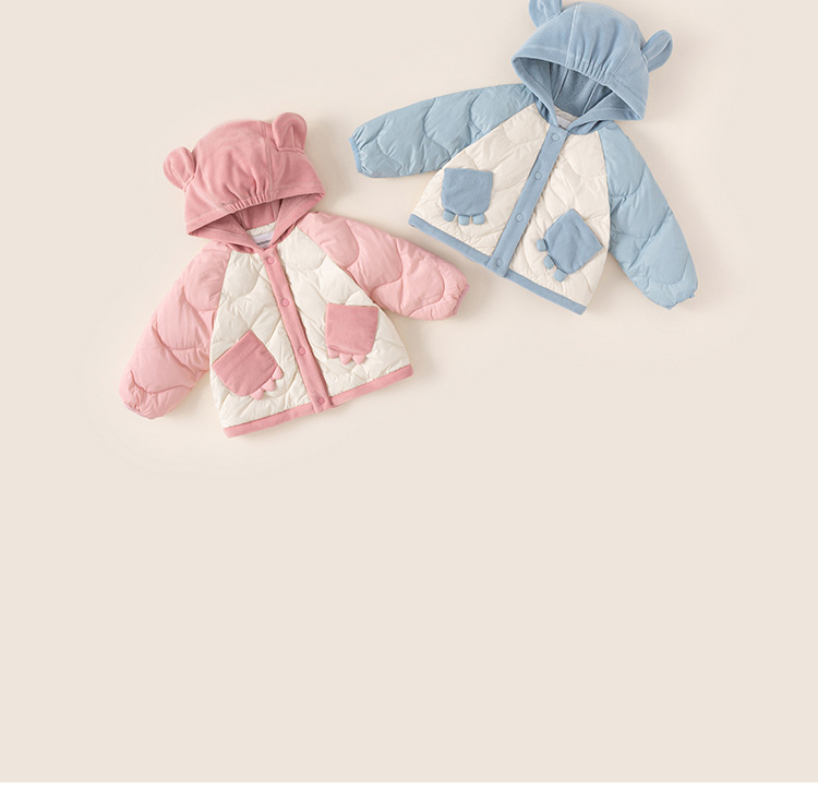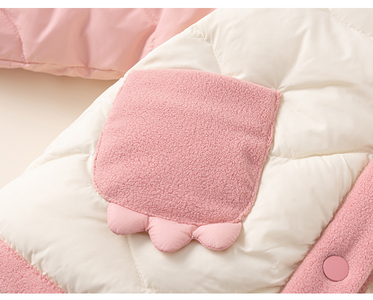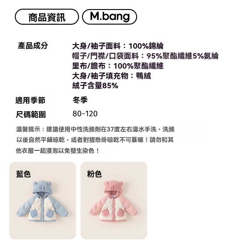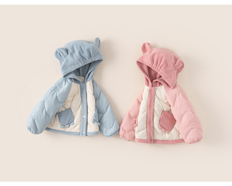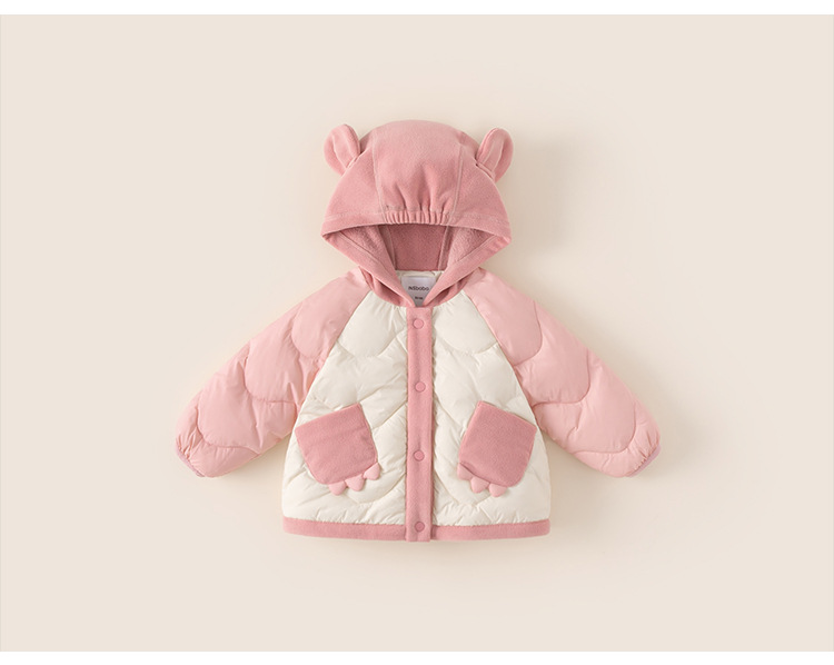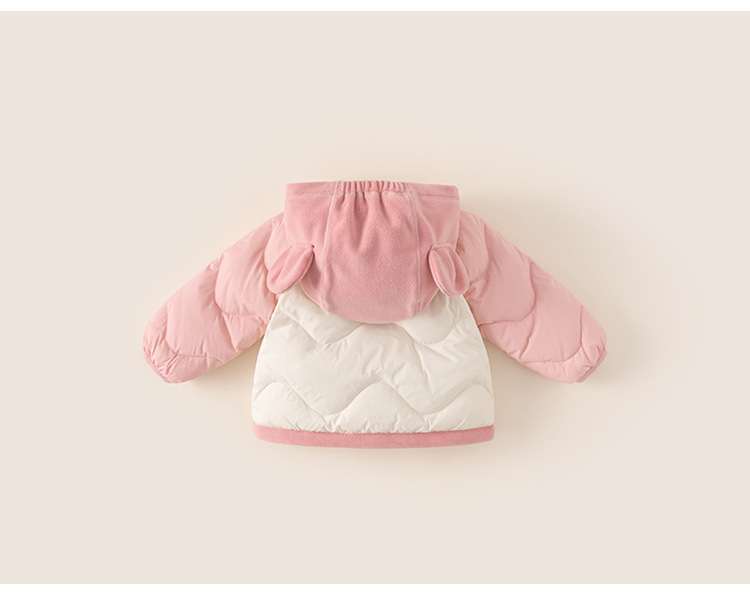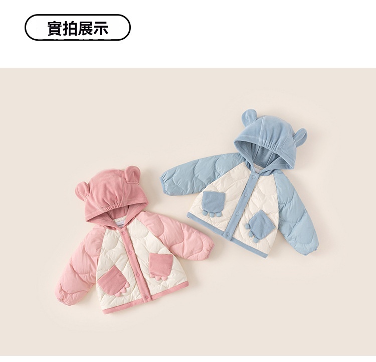 2025冬季拼色上衣保暖冬裝兒童衣服女寶寶連帽外套男童羽絨服